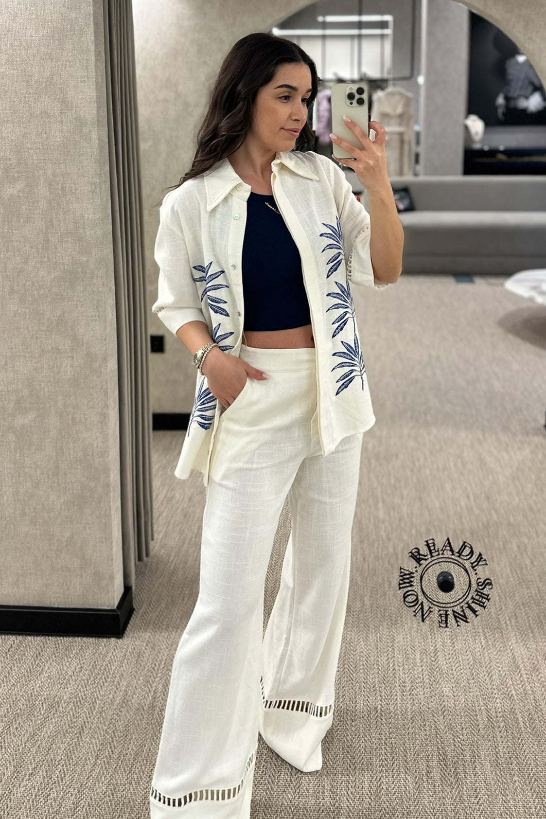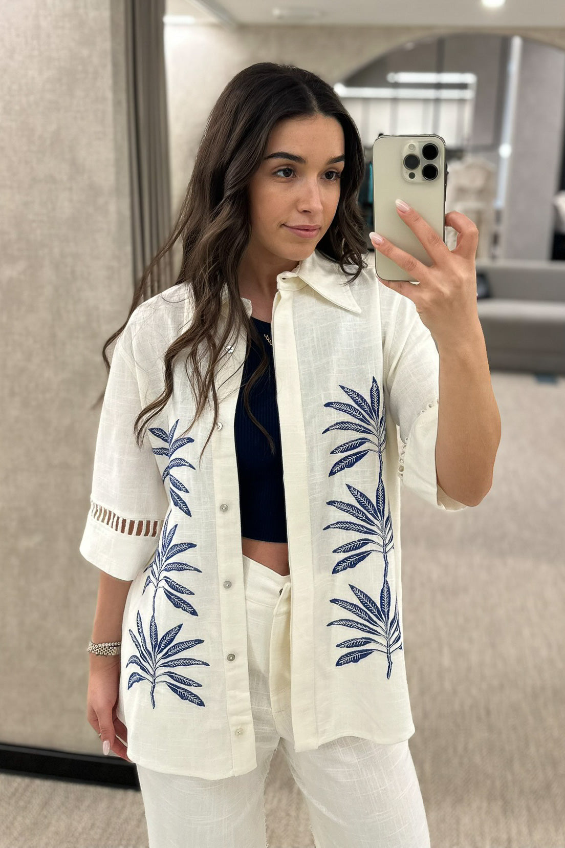 Camisa linho bordada