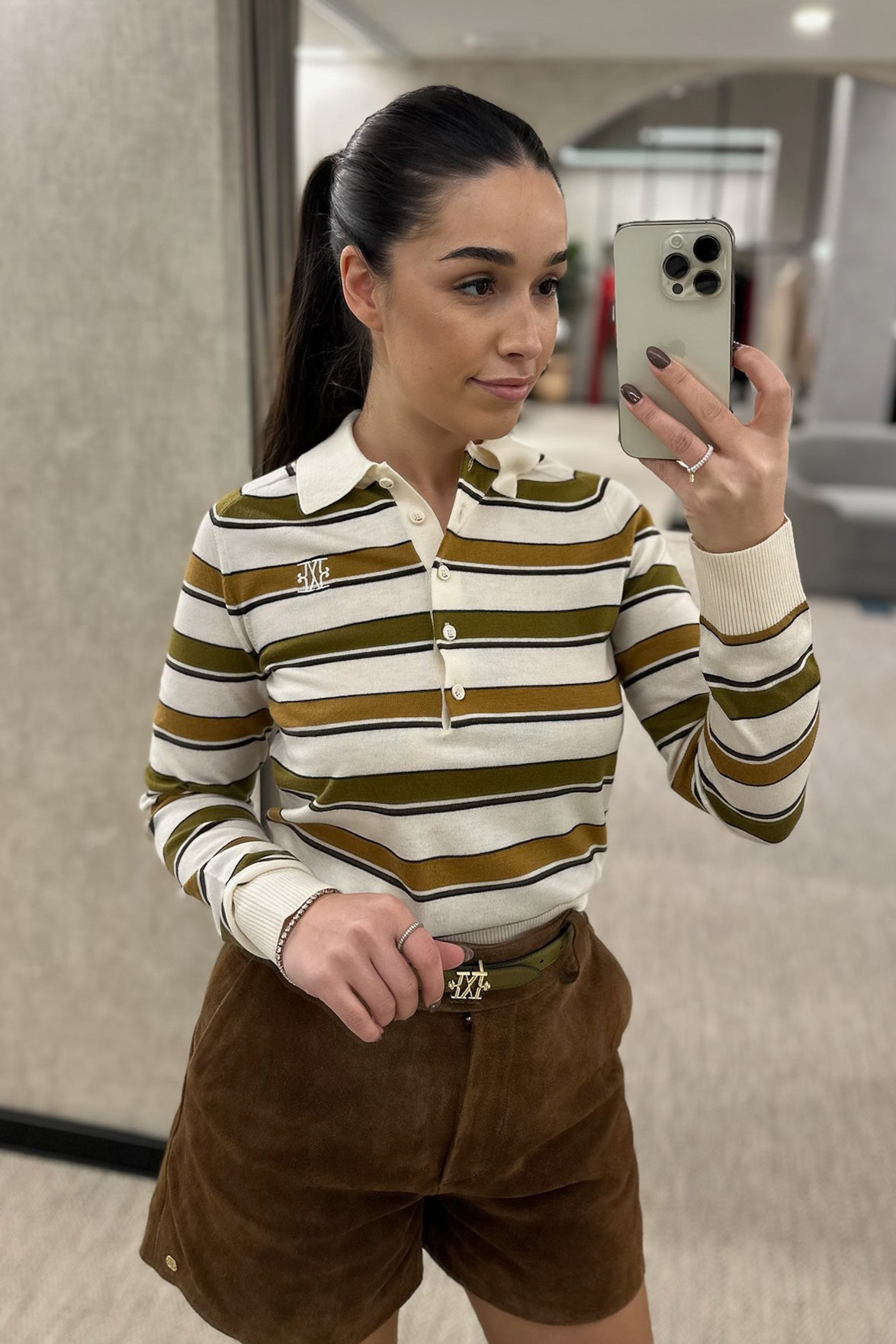 A blusa polo feminina de manga comprida Audrey da JOSH V é confeccionada com um tecido de alta qualidade, composto por poliéster e lã reciclados. Esta blusa de manga comprida possui estampa listrada e modelagem ajustada. O discreto monograma bordado no peito confere um toque único à peça. A blusa polo Audrey da JOSH V combina perfeitamente com jeans ou com as peças verde-escuras da coleção JOSH V.