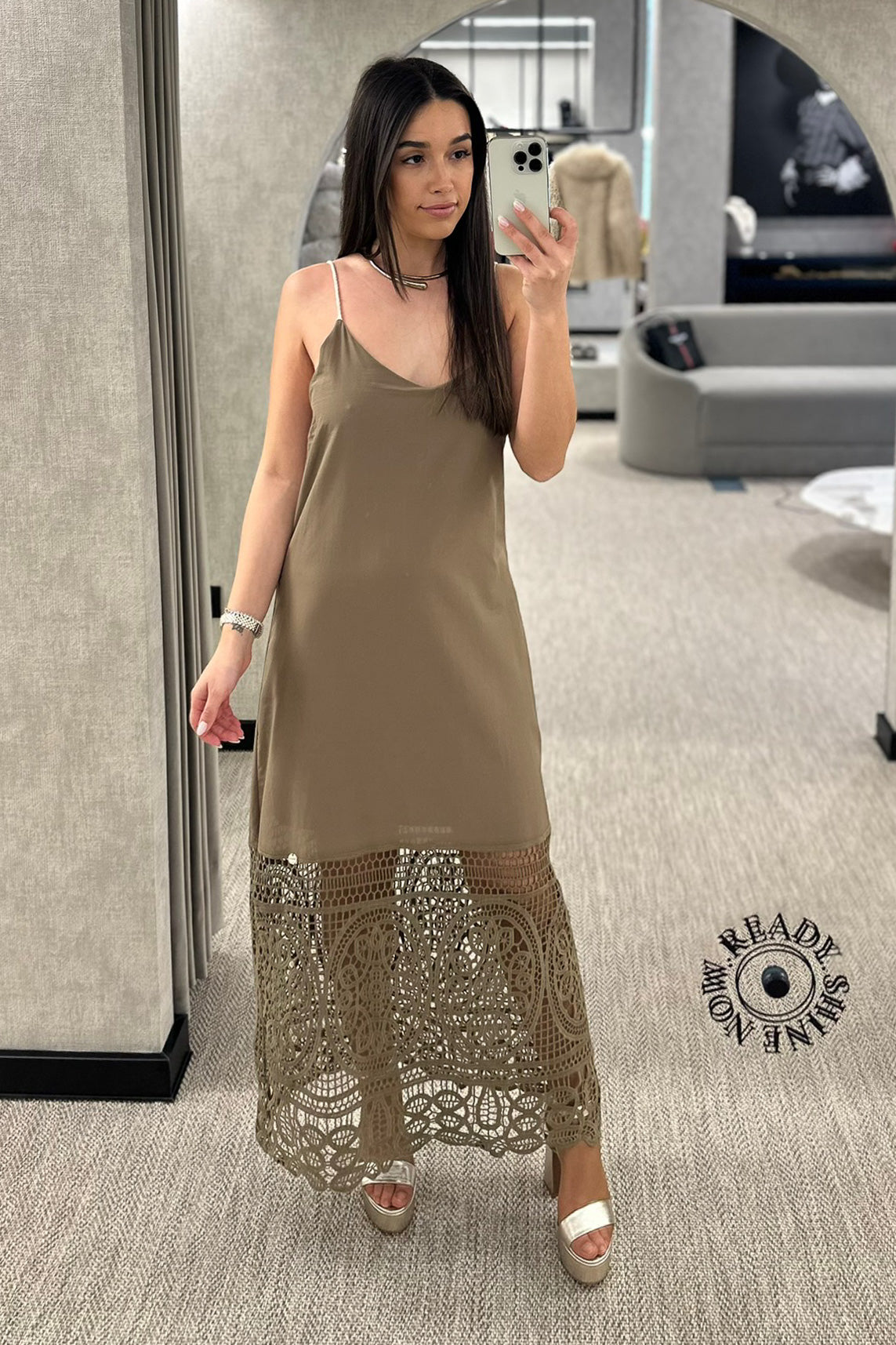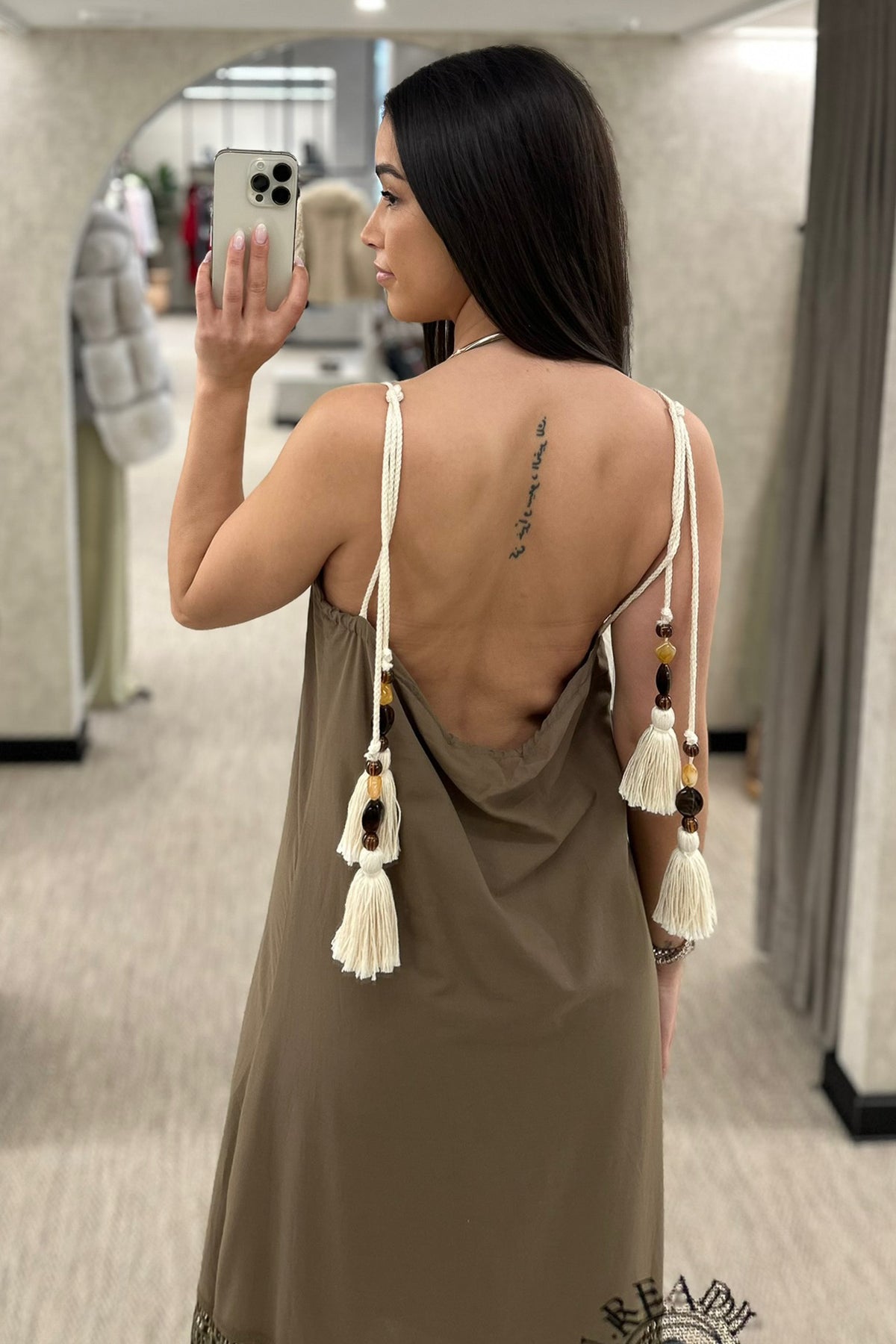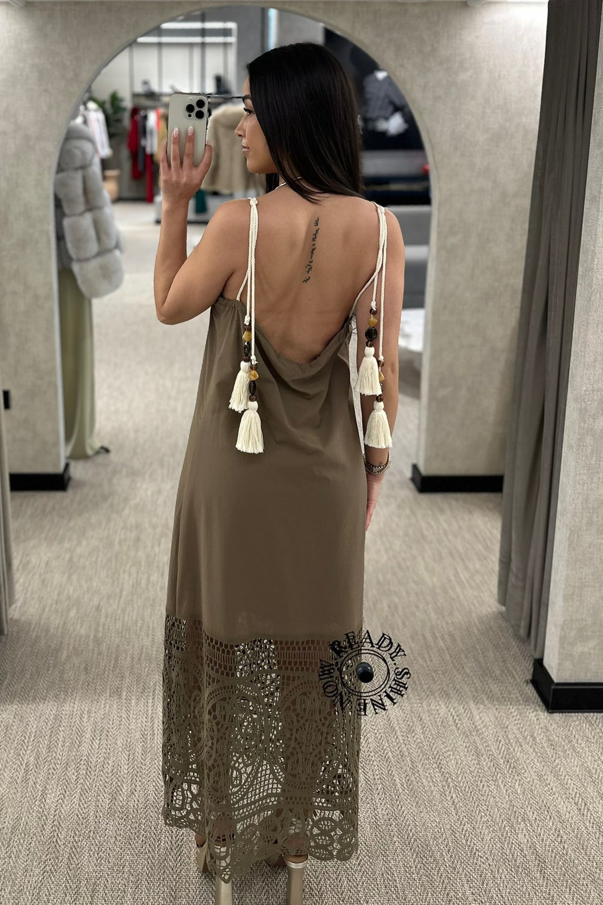 Vestido disponível em verde e em cream