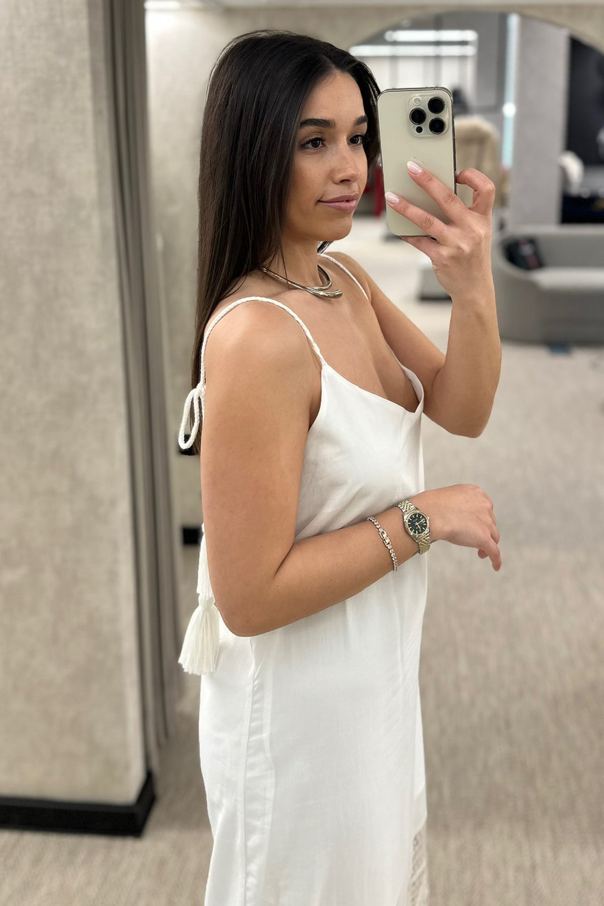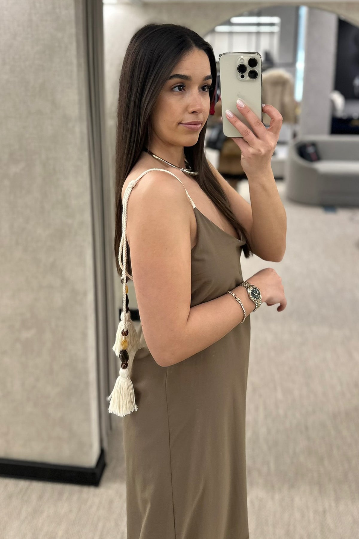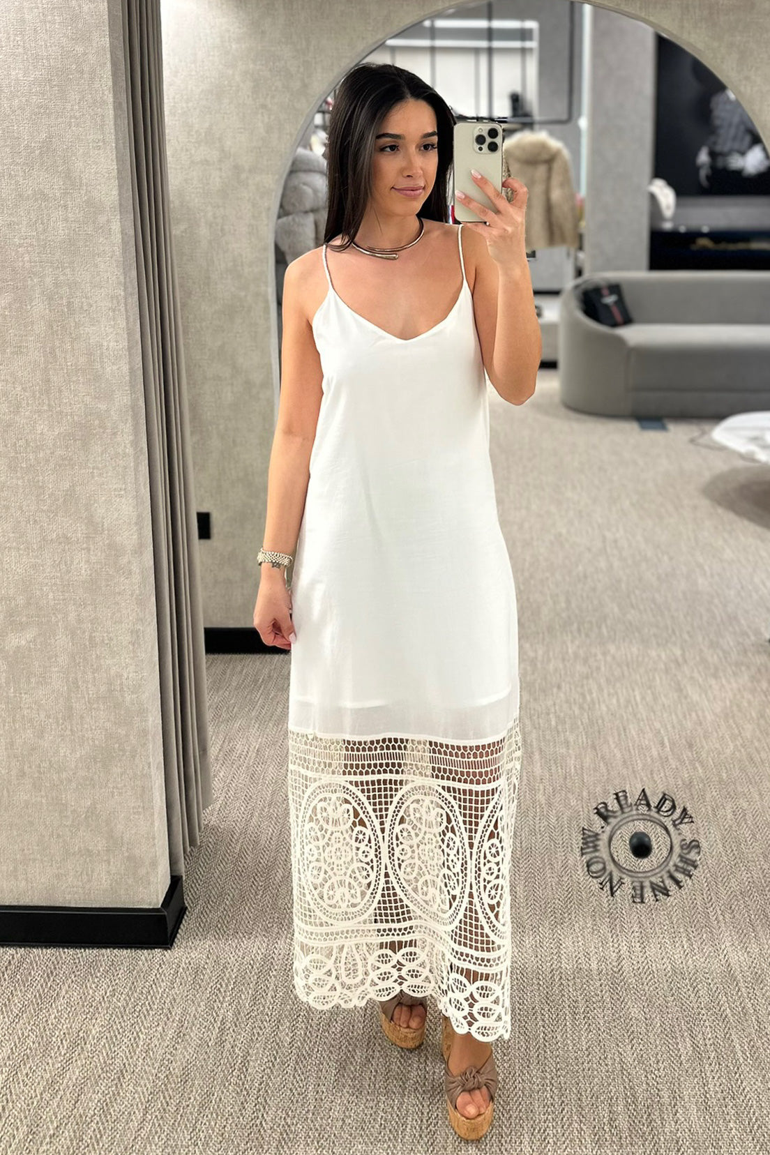 Vestido disponível em verde e em cream