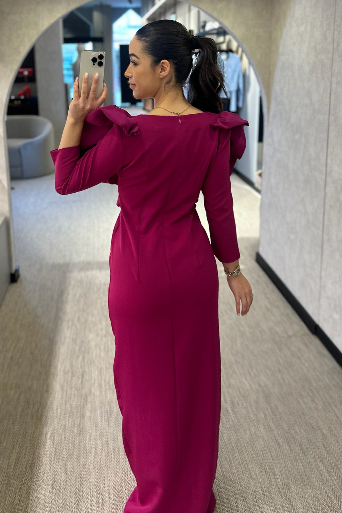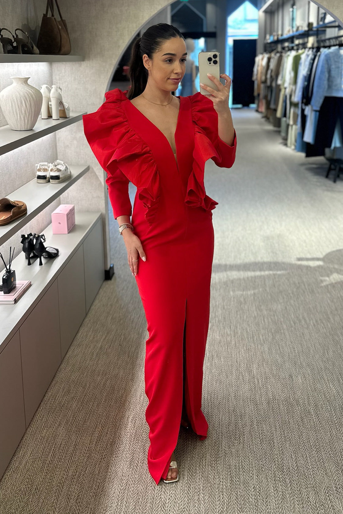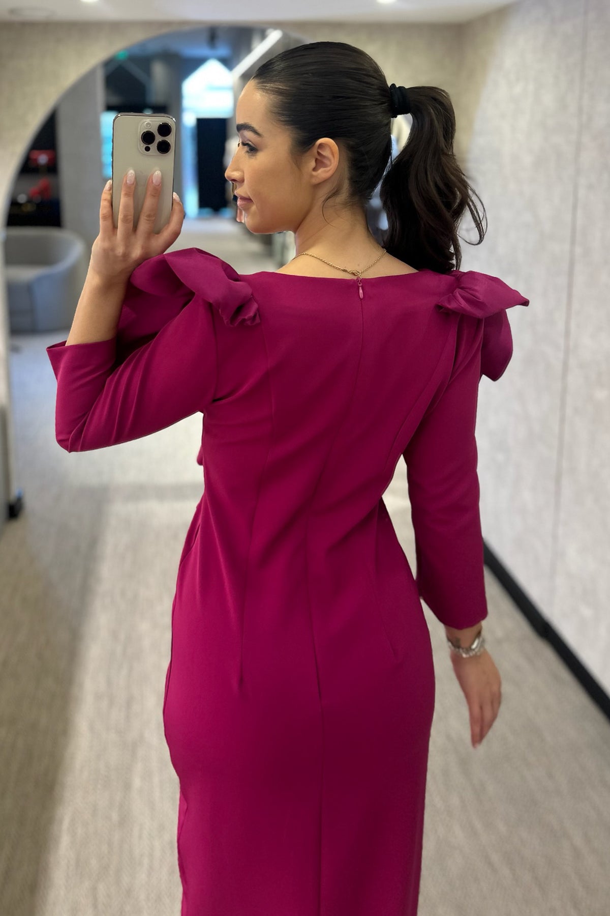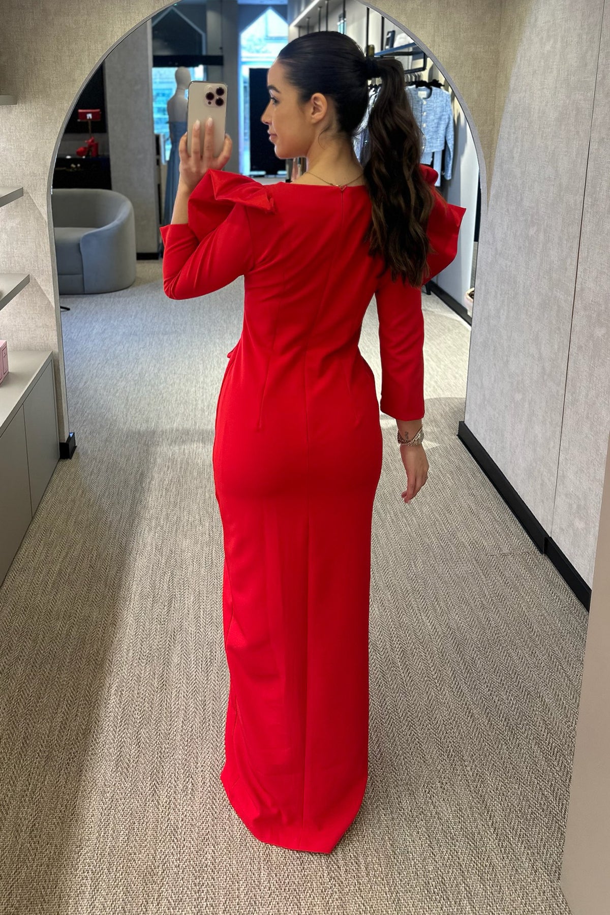 Vestido cerimónia disponível em vermelho e em pitaya