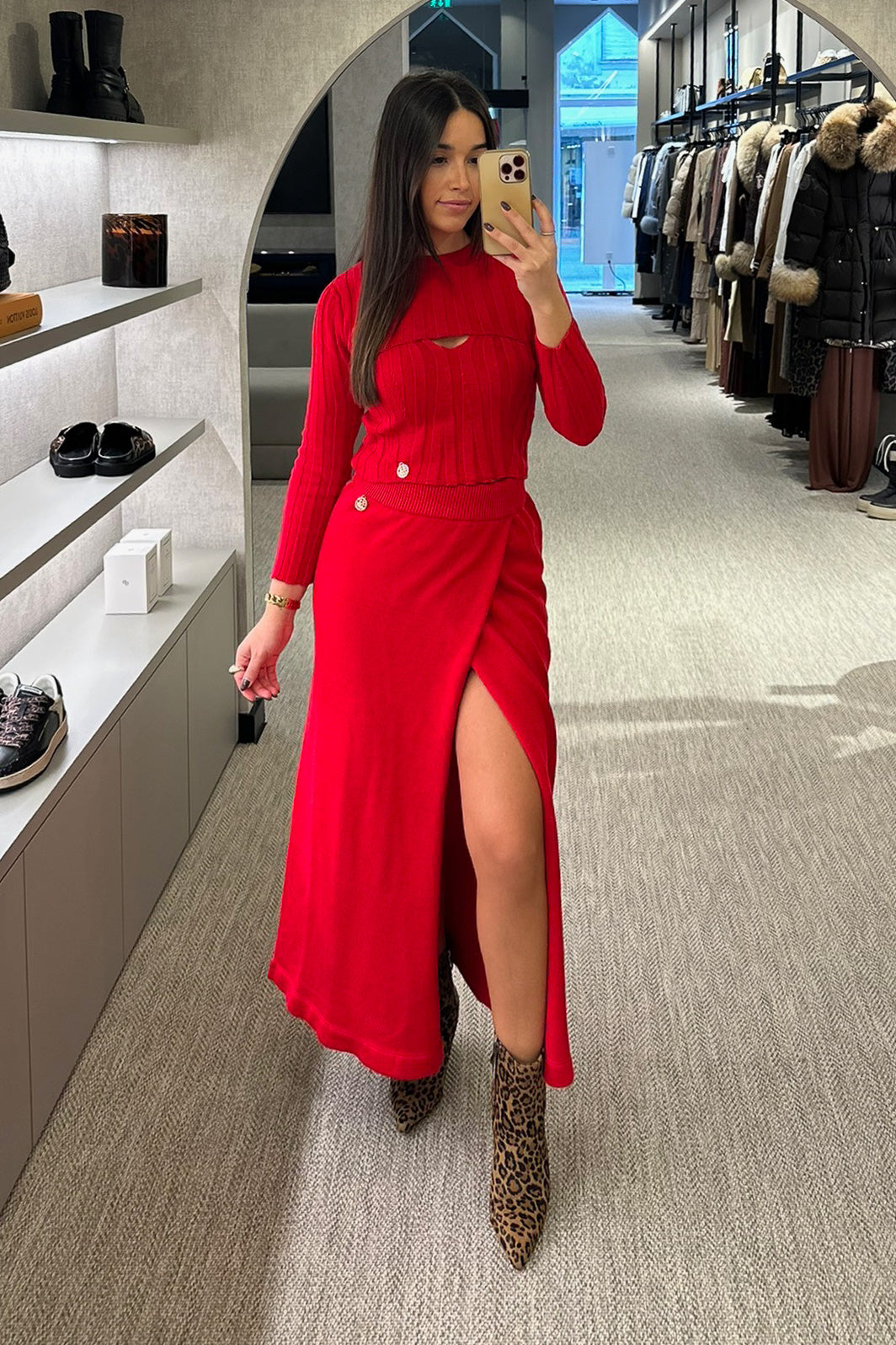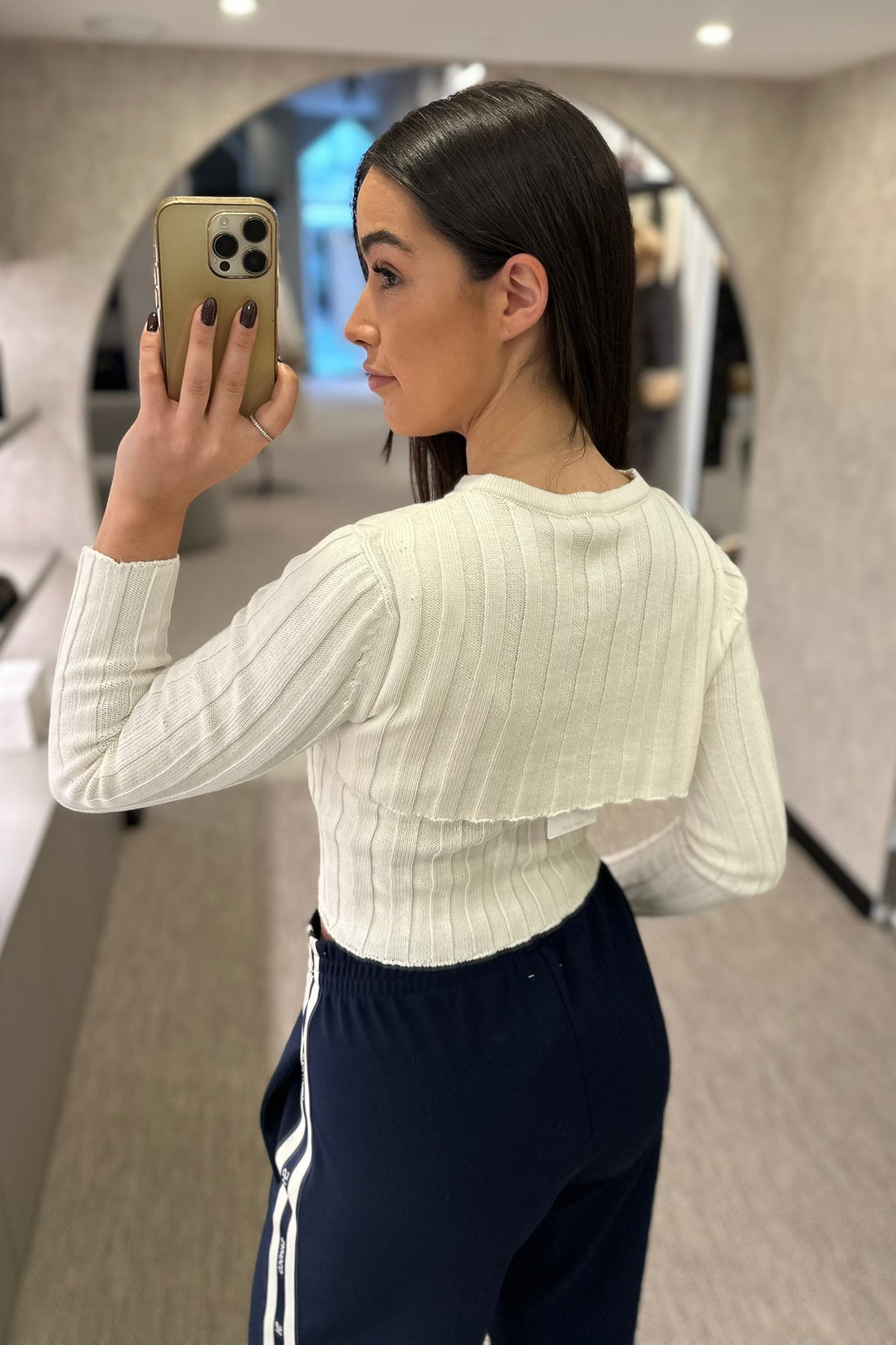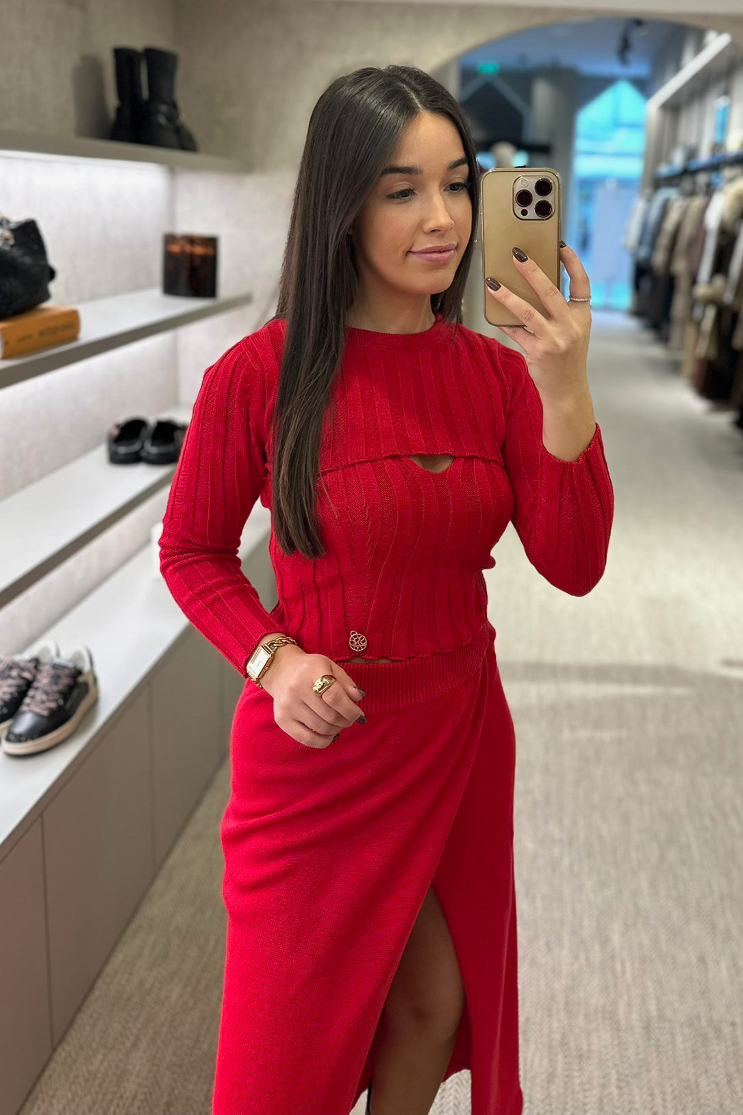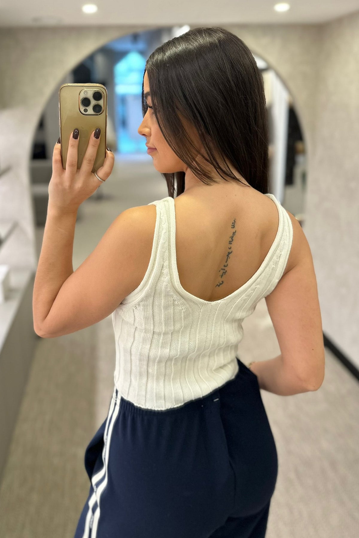 Conjunto Top disponível em Cream, azul claro e vermelho