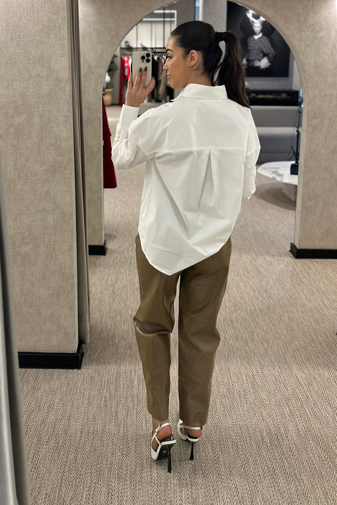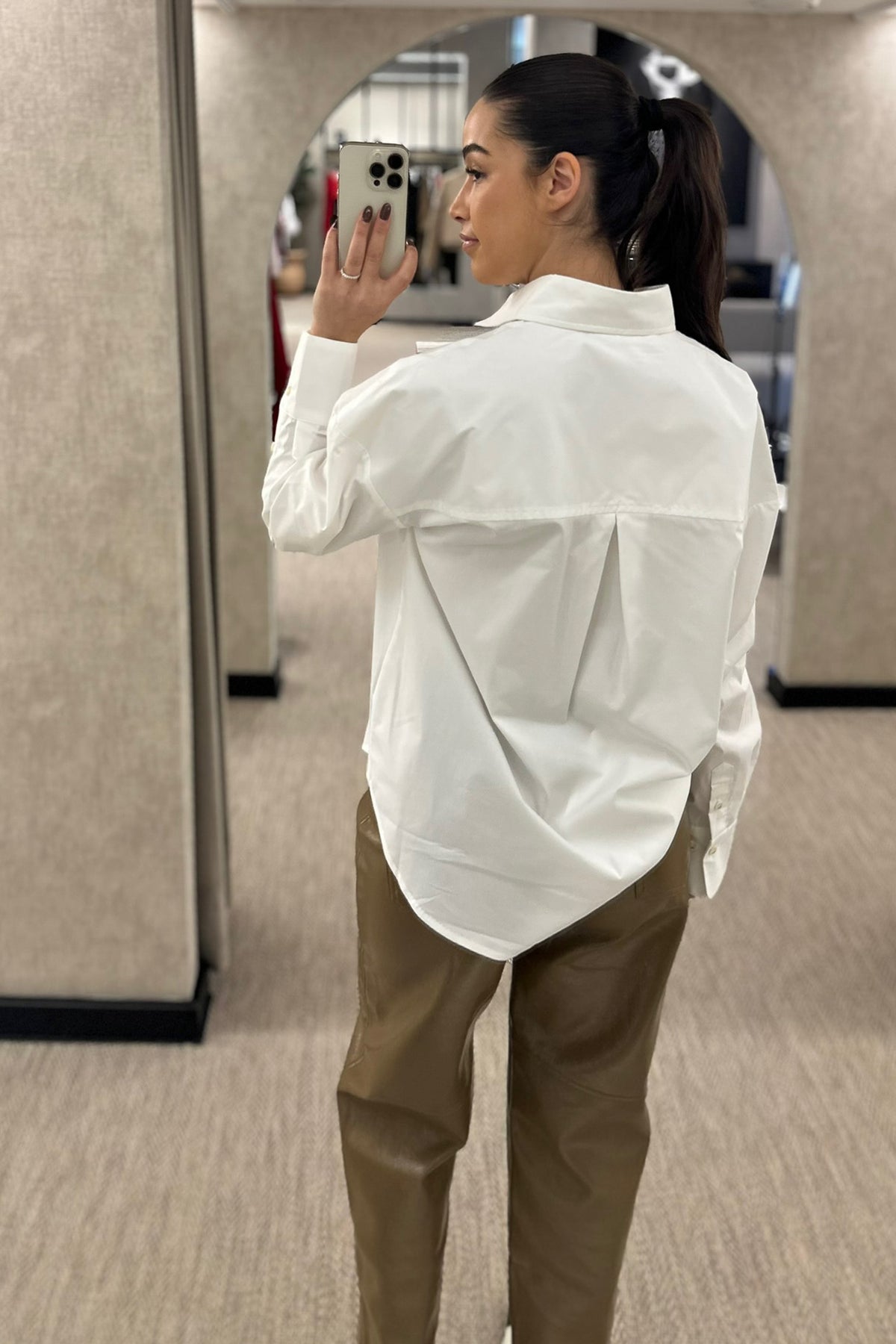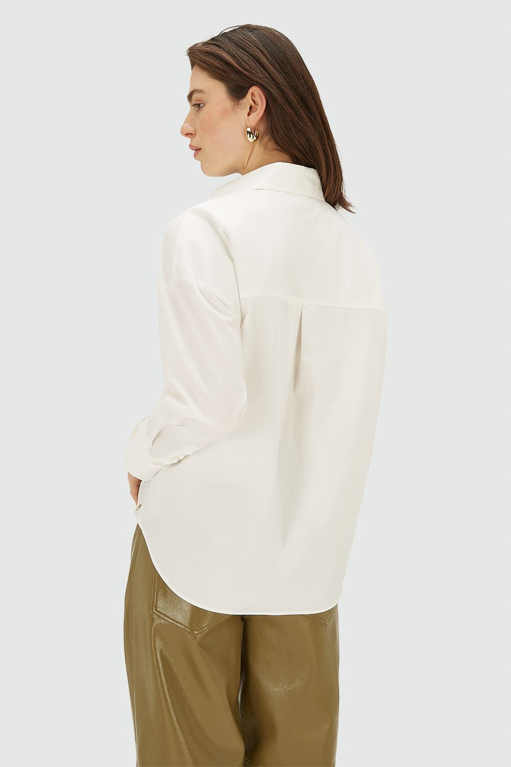 A blusa feminina Cecile da JOSH V na cor Off White combina conforto com um visual luxuoso. Esta blusa oversized é confeccionada em popeline stretch com poliéster e algodão reciclados, provenientes da Better Cotton Initiative (BCI™). O bolso no peito e o emblema JOSH V na manga esquerda adicionam detalhes refinados, enquanto as lantejoulas douradas na carcela dos botões conferem um toque elegante. Combine a blusa com calças de alfaiataria e salto alto para um look chique, ou use-a com jeans e botas de cano curto para uma produção casual.
