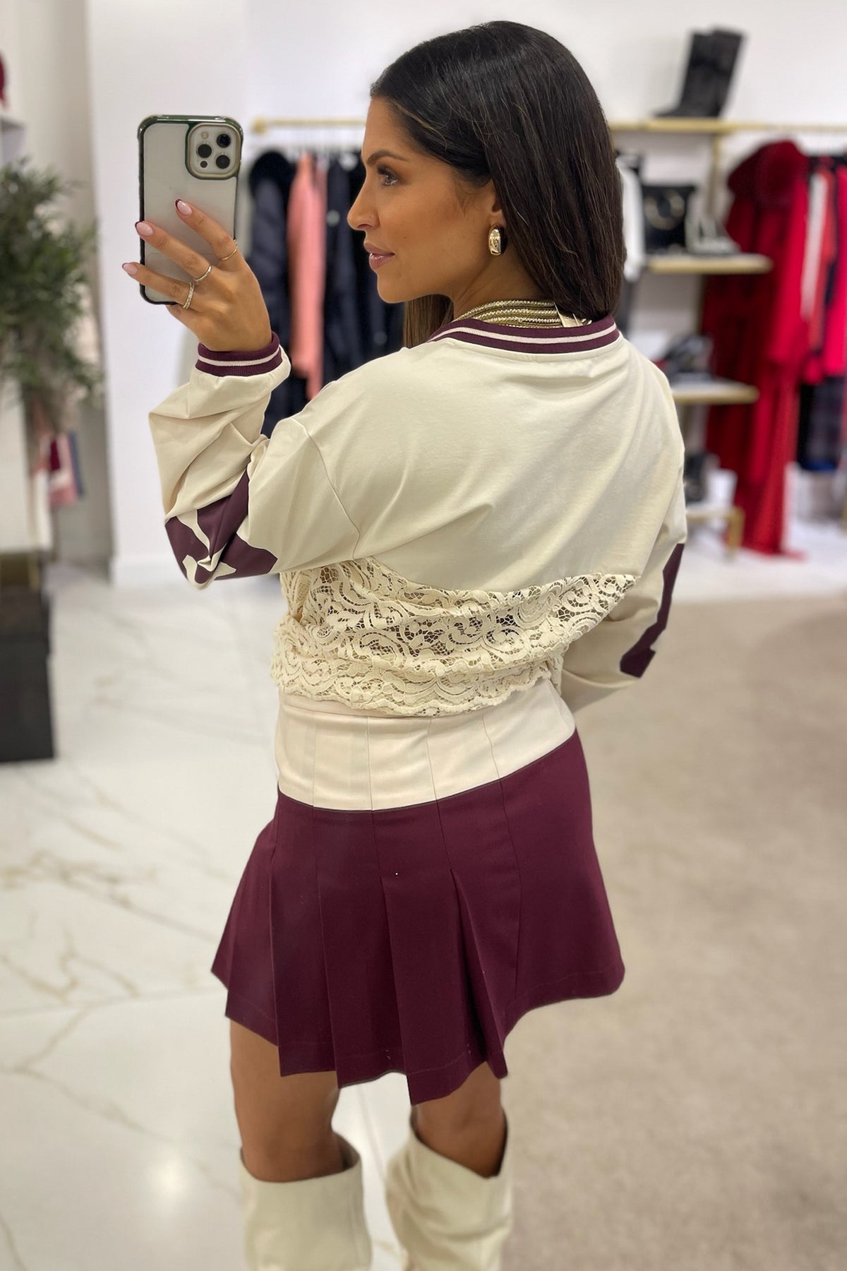 Saia-Calção bege/bordeaux
