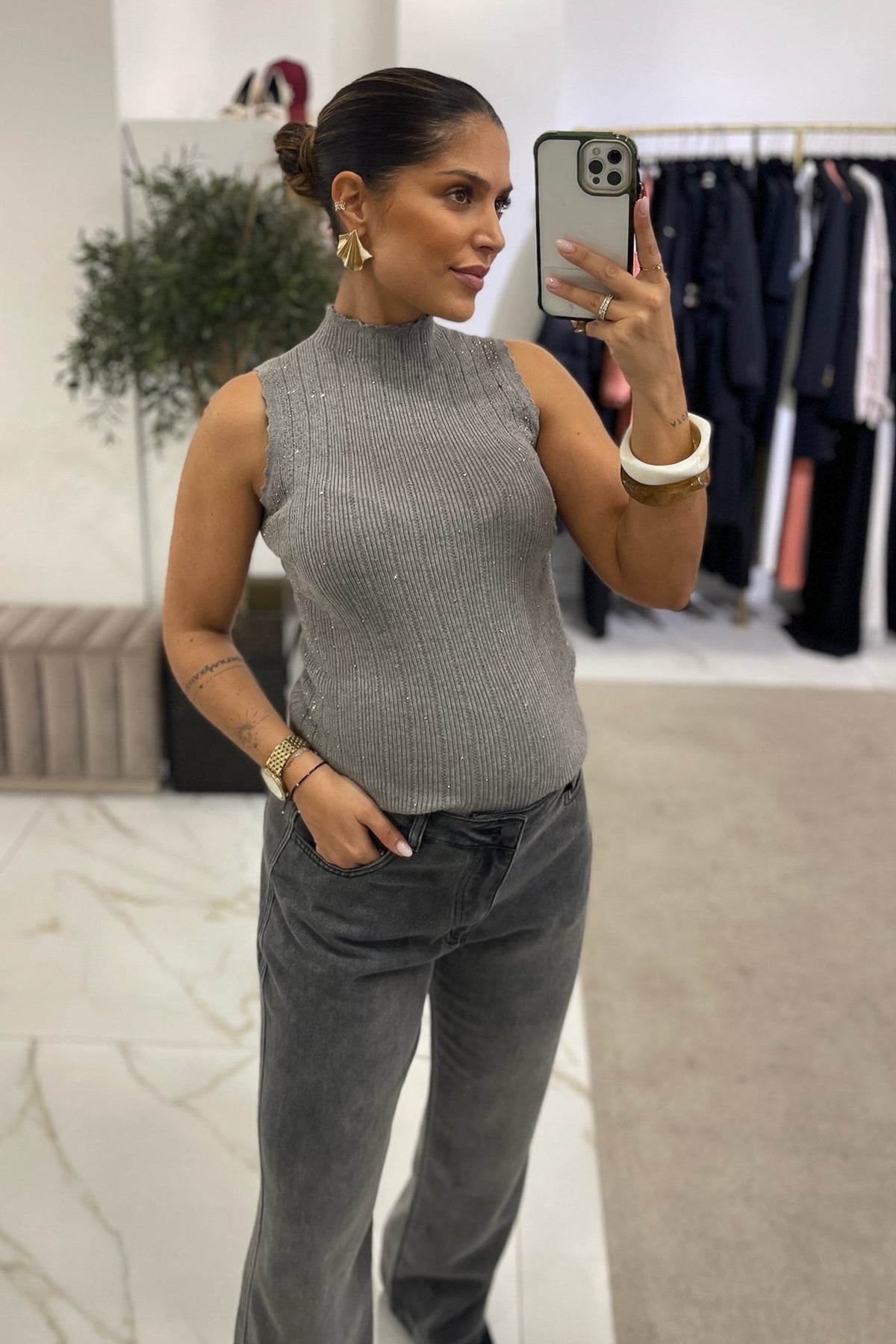 Top disponível em preto, cinza, vermelho, bege e azul.