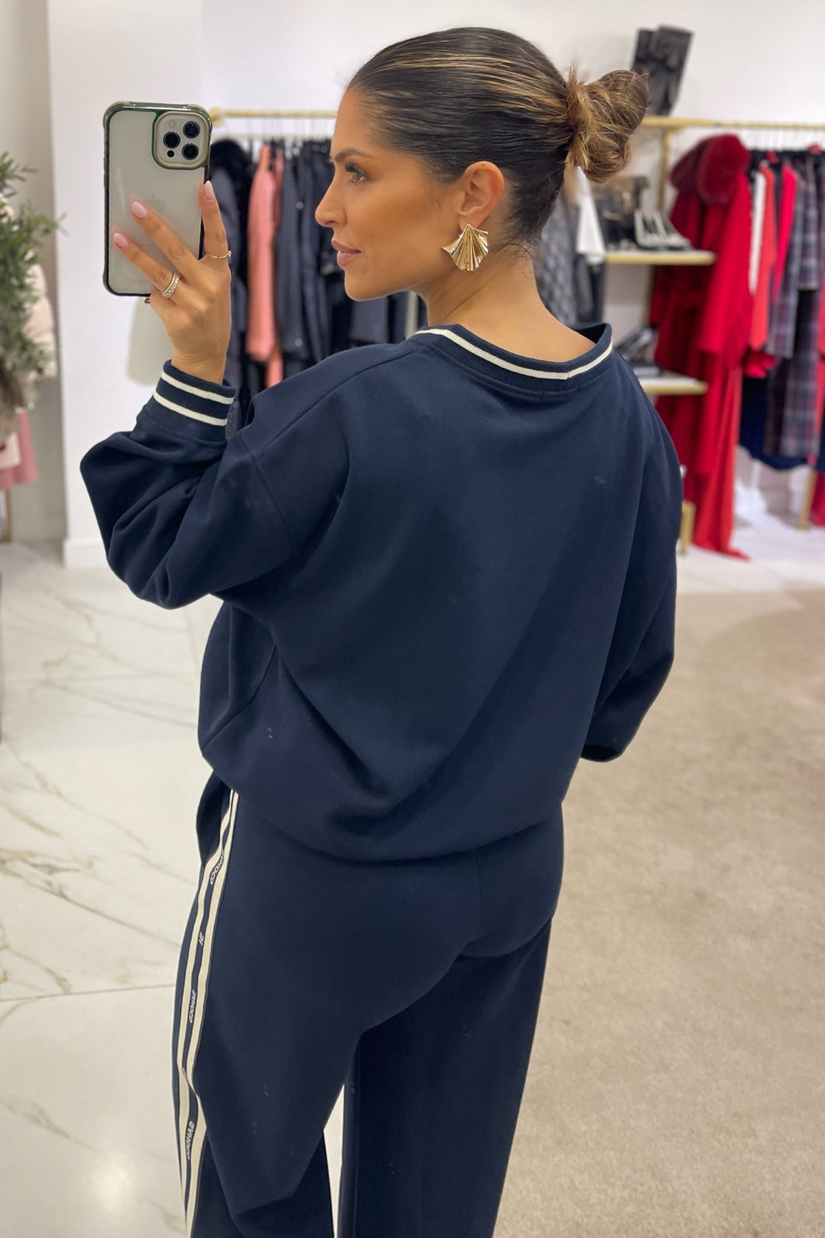 Calça disponível em camel e em azul