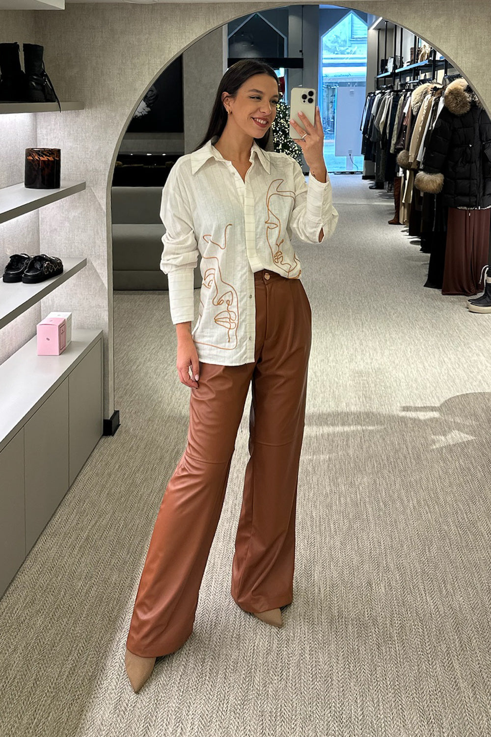 Camisa linho bordada