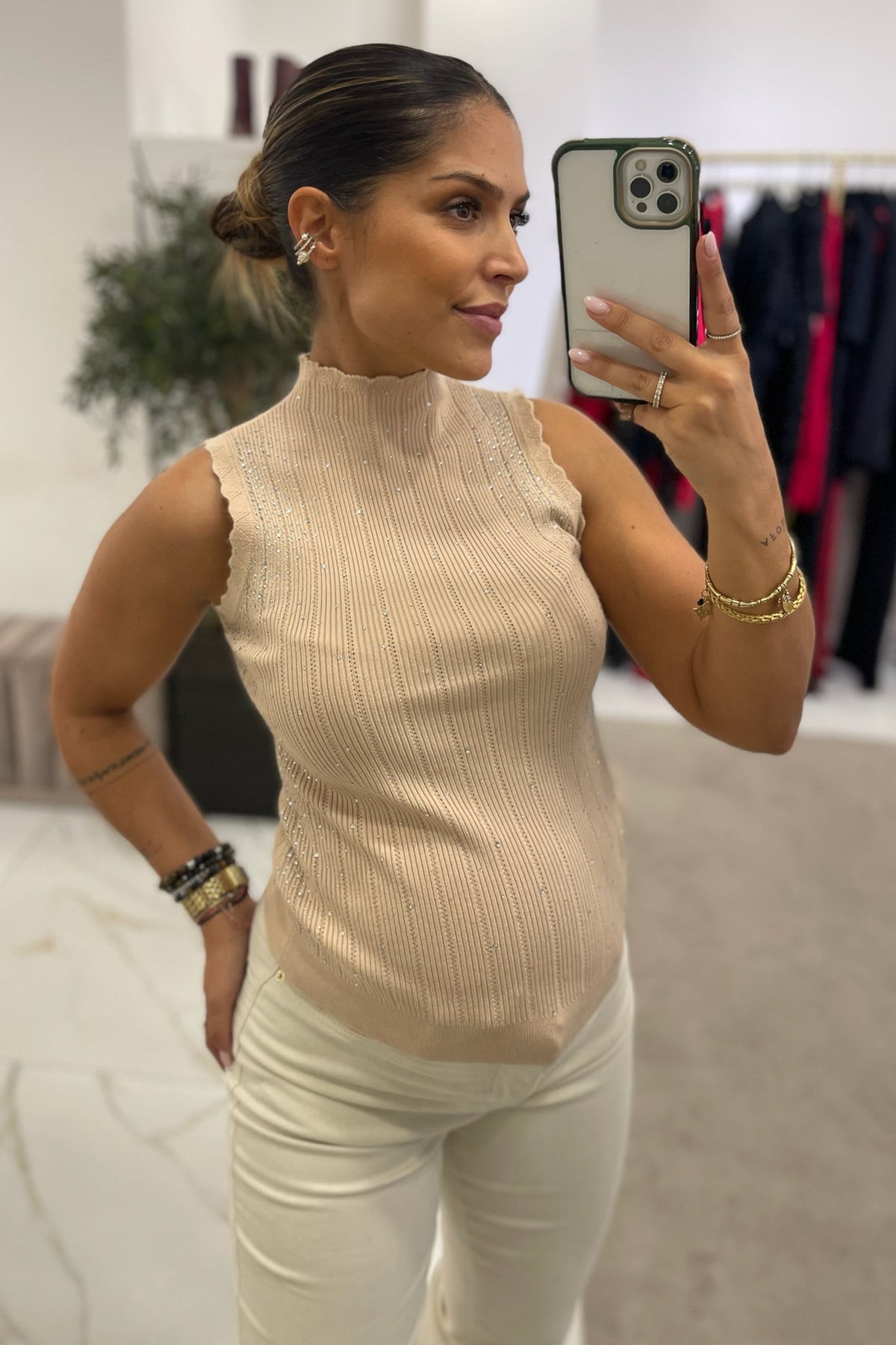 Top disponível em preto, cinza, vermelho, bege e azul.