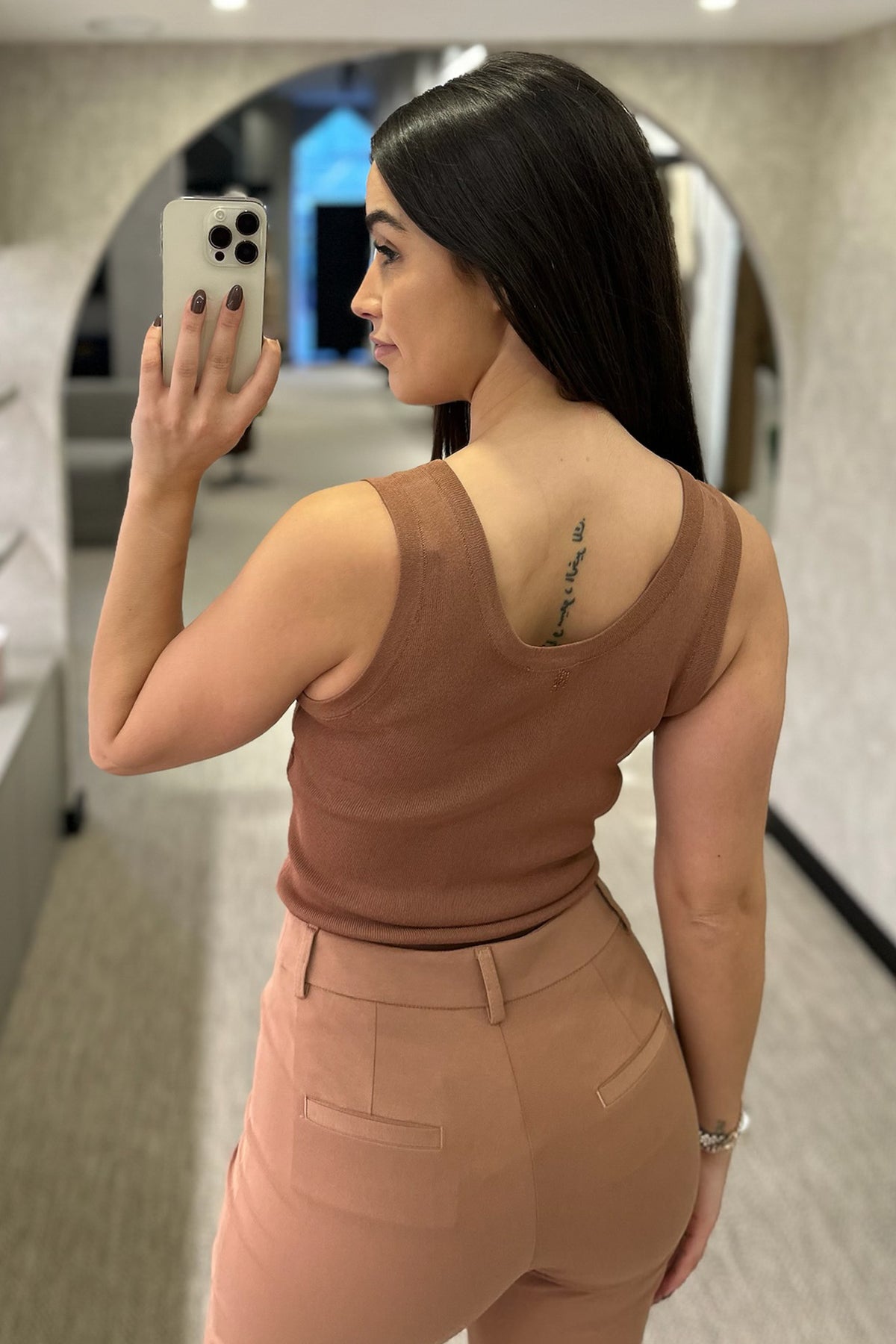 Top disponível em azul, preto, verde, castanho e azul escuro.