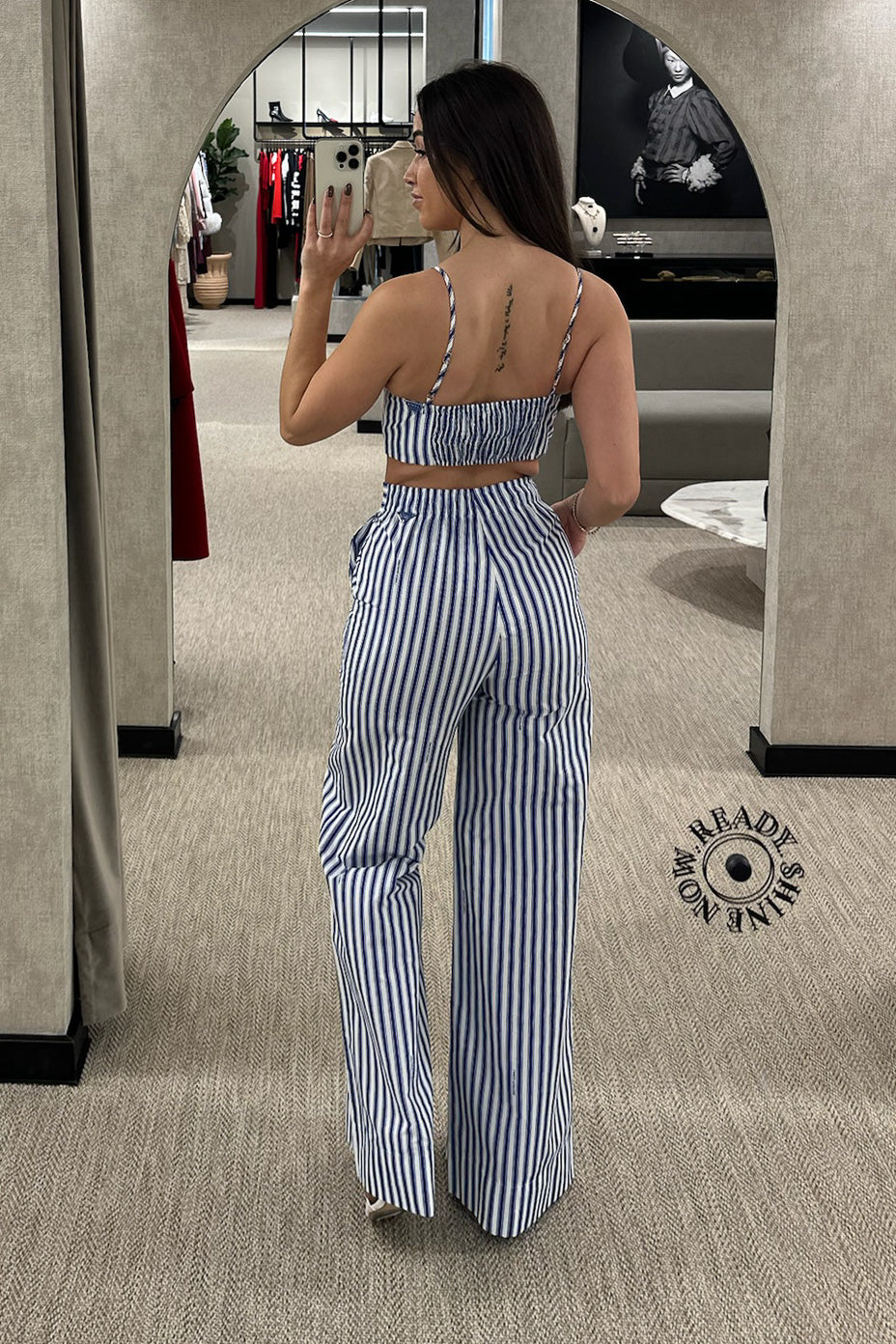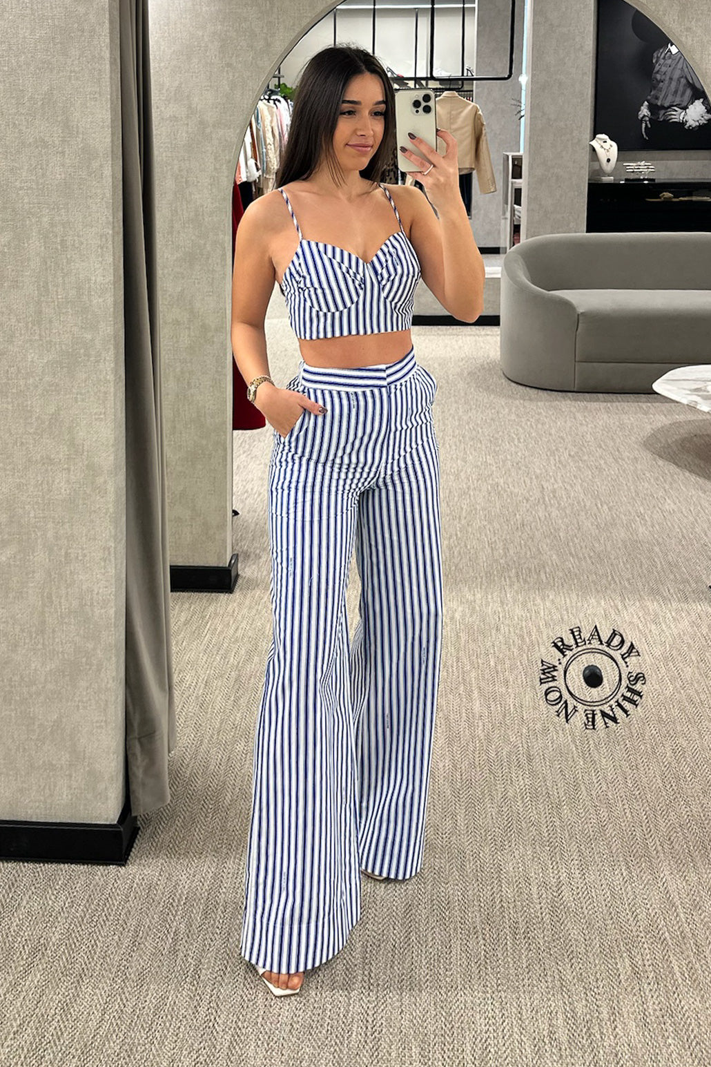 Calça às riscas