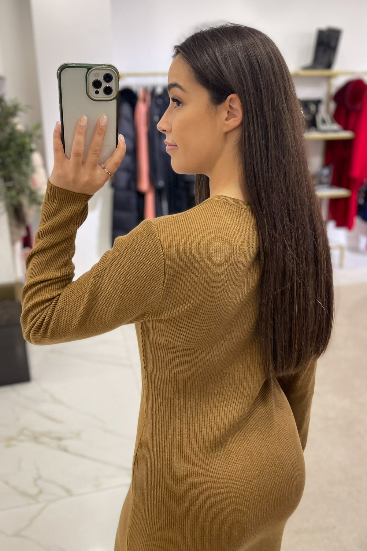 Vestido disponível em camel e em cream