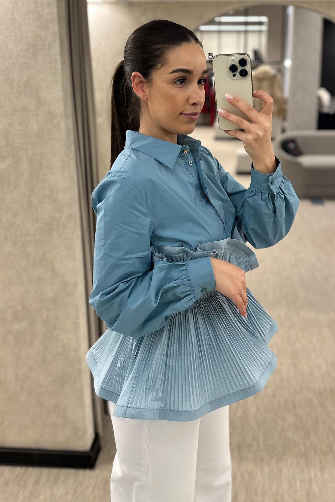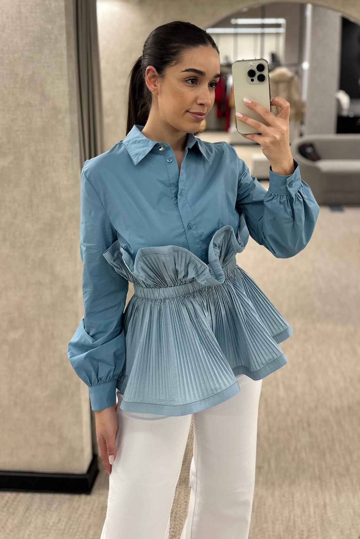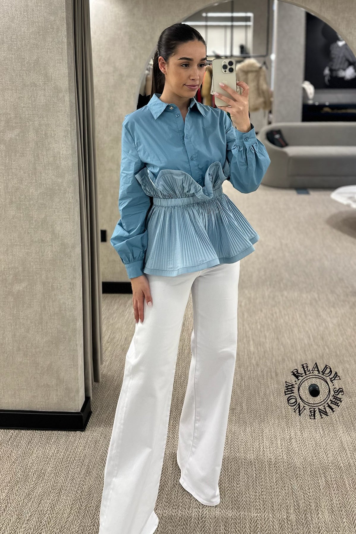 Camisa disponível em branco e em azul